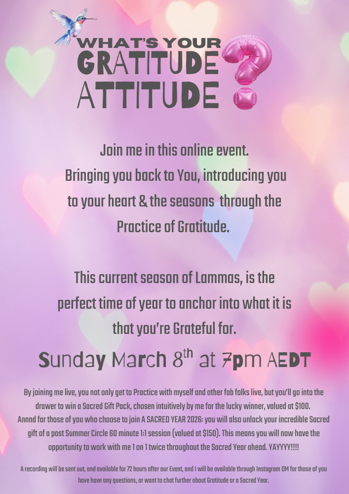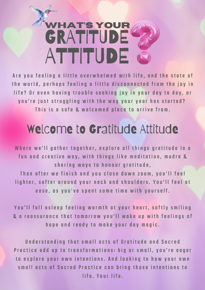 This is a Sacred snapshot into the kind of Circle, Practice and Space we create in A Sacred Year. I’d love you to join me and some other cool peeps to explore your Attitude to Gratitude through the Seasons.